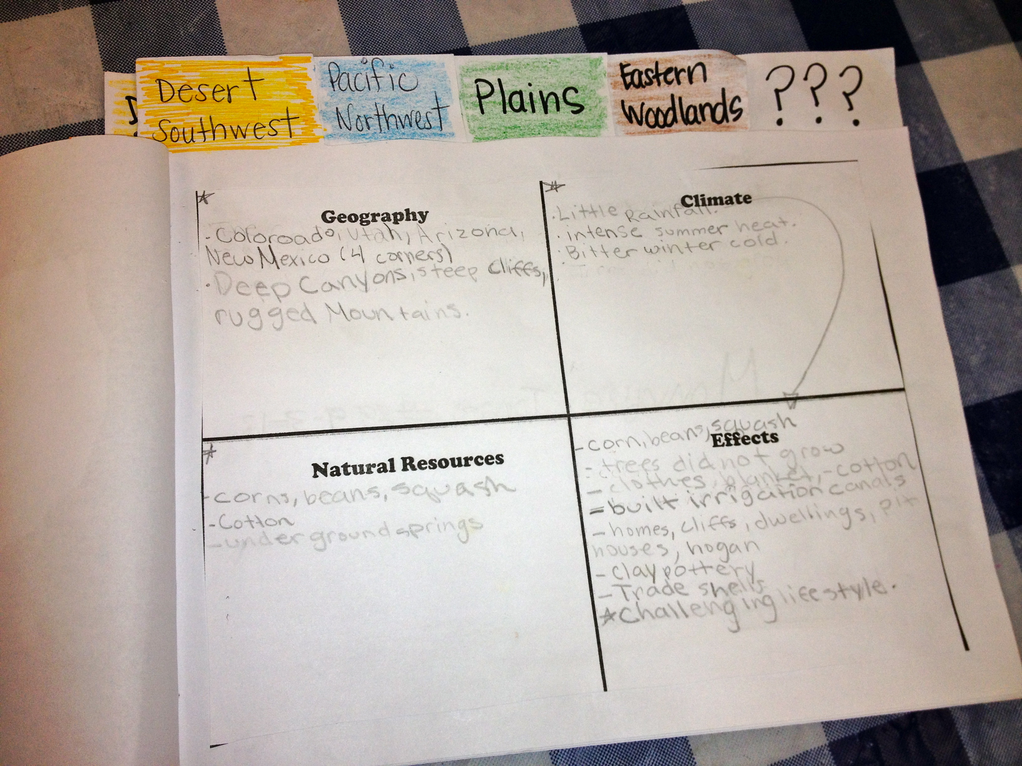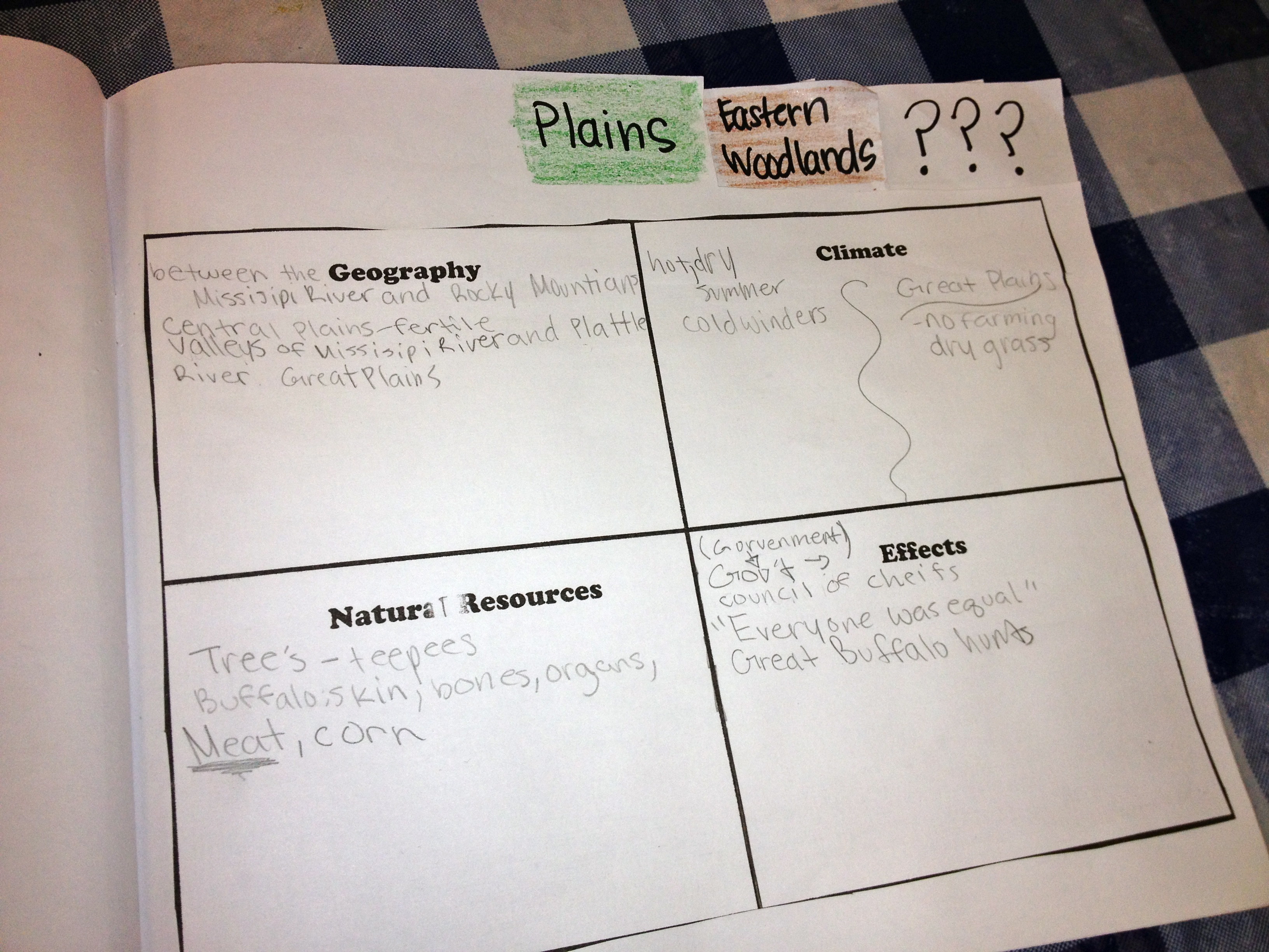 This year my partner teacher and I are really striving to pull the essential questions and desired comprehension skills we want students to achieve BEFORE we plan the unit or chapter. Chapter 2 of our social studies book is Native Americans and the different regions in the U.S. The big idea is that people need to use their environment to survive and that affects their lifestyle. Our HM comprehension skill for the week was also “drawing conclusions”. This is what we came up with. (It turned out well. Next year, I would make only a few minor adjustments.)