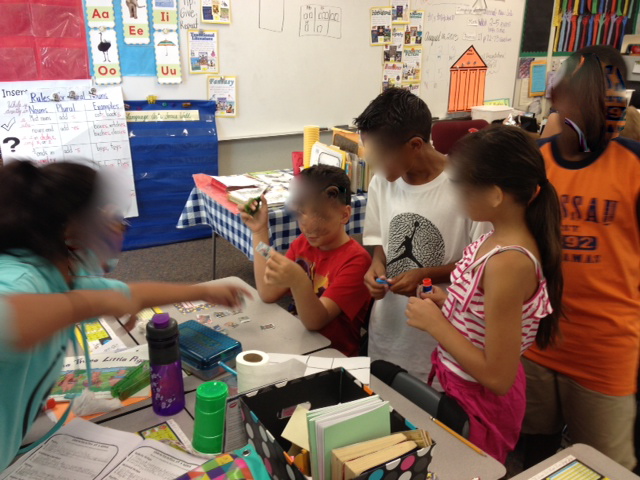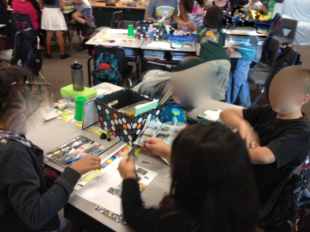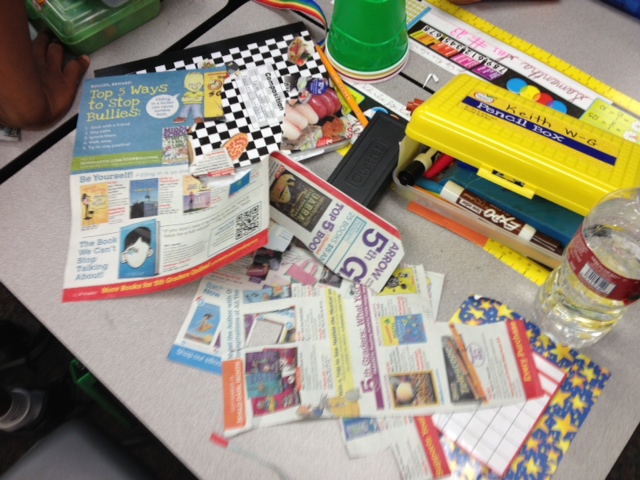 My students were asked to bring a composition book to school for their reader’s notebook. (Next year, I’ll be sure to specify to bring a composition book with a cardboard/paper cover, not a plastic one. The plastic covers were difficult to adhere their pictures to, even with modge podge.)